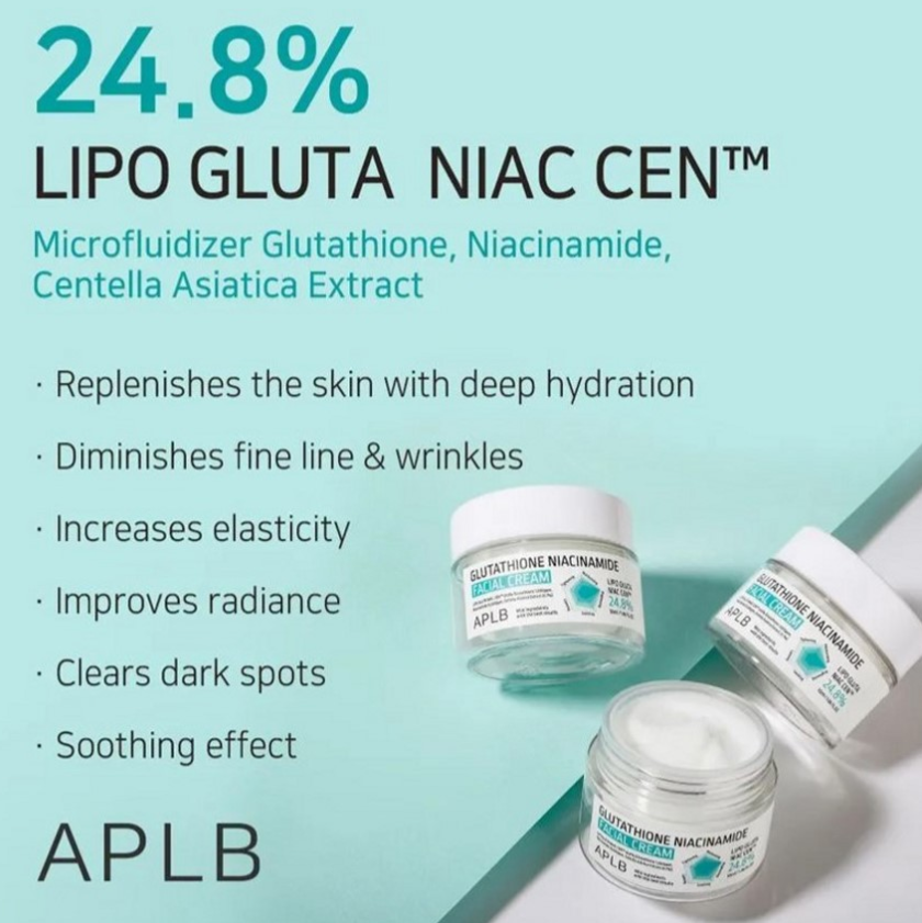 APLB Glutathione Niacinamide Facial Cream (55ml) is a, lightweight, brightening