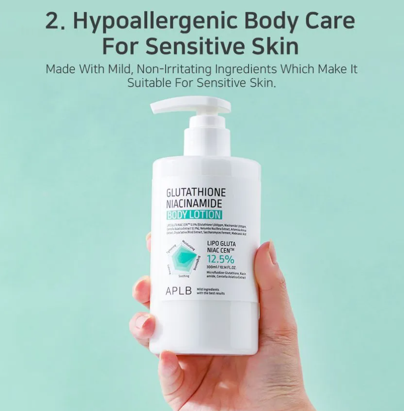 Experience smooth, radiant, and nourished skin with APLB Glutathione Niacinamide Body