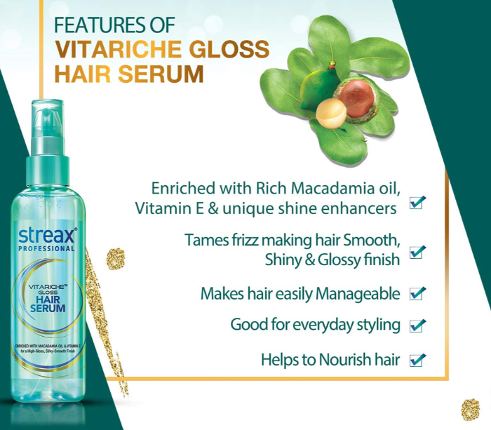 Transform dull, frizzy hair into silky, glossy perfection with Streax Professional Vitariche Gloss